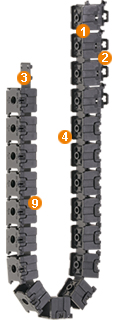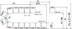 Série E1.10 – e-chain®, který se otvírá podlé vnějších poloměrů: