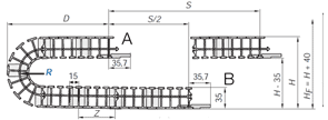 Poloměr ohybu R: 38 mm
