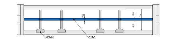Rozteč: 20 mm na článek = 50 článků/m