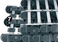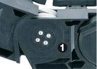 Úseky řetězu jsou příčně rozdělené pro snímací prvky (elektrické/hydraulické)