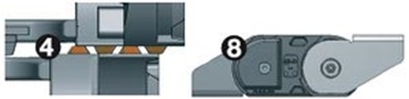 Systém vodicích žlabů ve spojení s opěrami AUTO-GLIDE zaručuje, že horní a spodní větev jsou kompenzovány - bezpečné při vysokých rychlostech