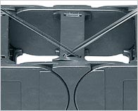Modulová struktura vodicího žlábku umožňuje spojování různých poloměrů řetězů, kruhů a ohybů, vždy se stejnými součástmi žlábku.