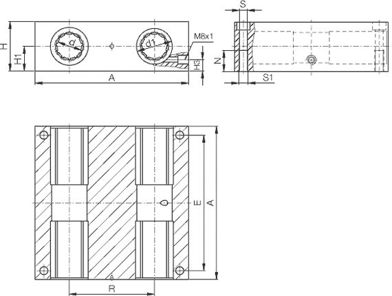 | Order no. | d | d1 | A | H | H1 | H3 | R | N | E | S | S1 | ||