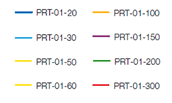 PRT-01-20: M4, min. 6 šroubů PRT-01-30: M4, min. 8 šroubů PRT-01-60: M5, min. 10 šroubů PRT-01-100: M5, min. 12 šroubů PRT-01-200: M6, min. 12 šroubů