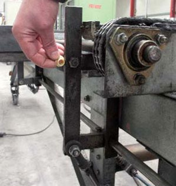 Simultaneously, the easy to mount pillow block bearings are used in the facility. These are bearing units that likewise compensate for and prevent misalignments. For this purpose, maintenance-free rod end bearings that absorb high forces at normal ambient temperatures are mounted. They have excellent dampening properties and at the same time weighs only a fifth of the conventional metallic bearing housing.